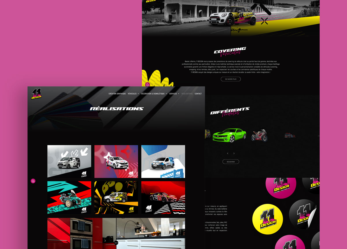 11 DESIGN est une entrprise créative basée à Reims, spécialisée dans le covering et la personnalisation visuelle. Experte en marquage de véhicules, covering total ou partiel, vitrines et supports grand format, elle transforme chaque surface en véritable outil de communication.