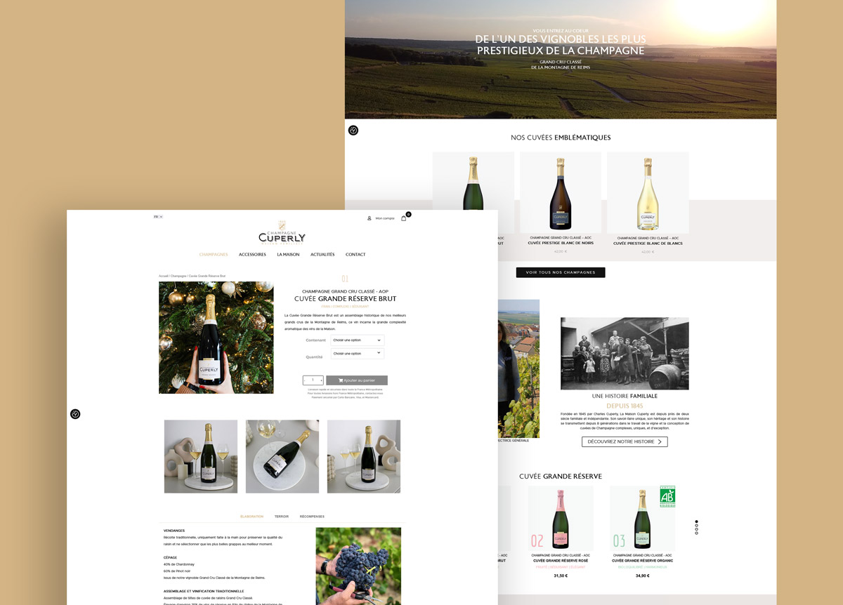 Fondée en 1845, la Maison Cuperly perpétue un savoir-faire familial unique. Implantée sur la Montagne de Reims, elle cultive des raisins issus de villages classés Grand Cru : Verzy, Verzenay et Mailly-Champagne. Engagée depuis plus de 20 ans dans une viticulture durable, certifiée HVE et VDC, elle élabore des champagnes d’exception, alliant finesse, élégance et respect du terroir.
