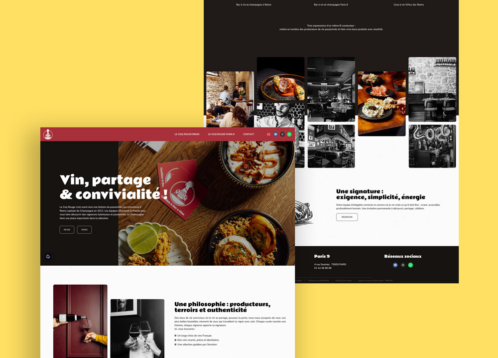 Le Coq Rouge est un bar à vin et restaurant convivial situé à Reims et à Paris, mettant à l’honneur une cuisine simple et généreuse à partager. L’établissement propose une sélection de vins soigneusement choisie, privilégiant des producteurs engagés et des cuvées expressives, accompagnées de planches et petits plats pensés pour la convivialité. Entre ambiance chaleureuse et esprit de partage, Le Coq Rouge invite à la découverte des saveurs et à la rencontre autour du vin, dans un cadre décontracté et authentique.