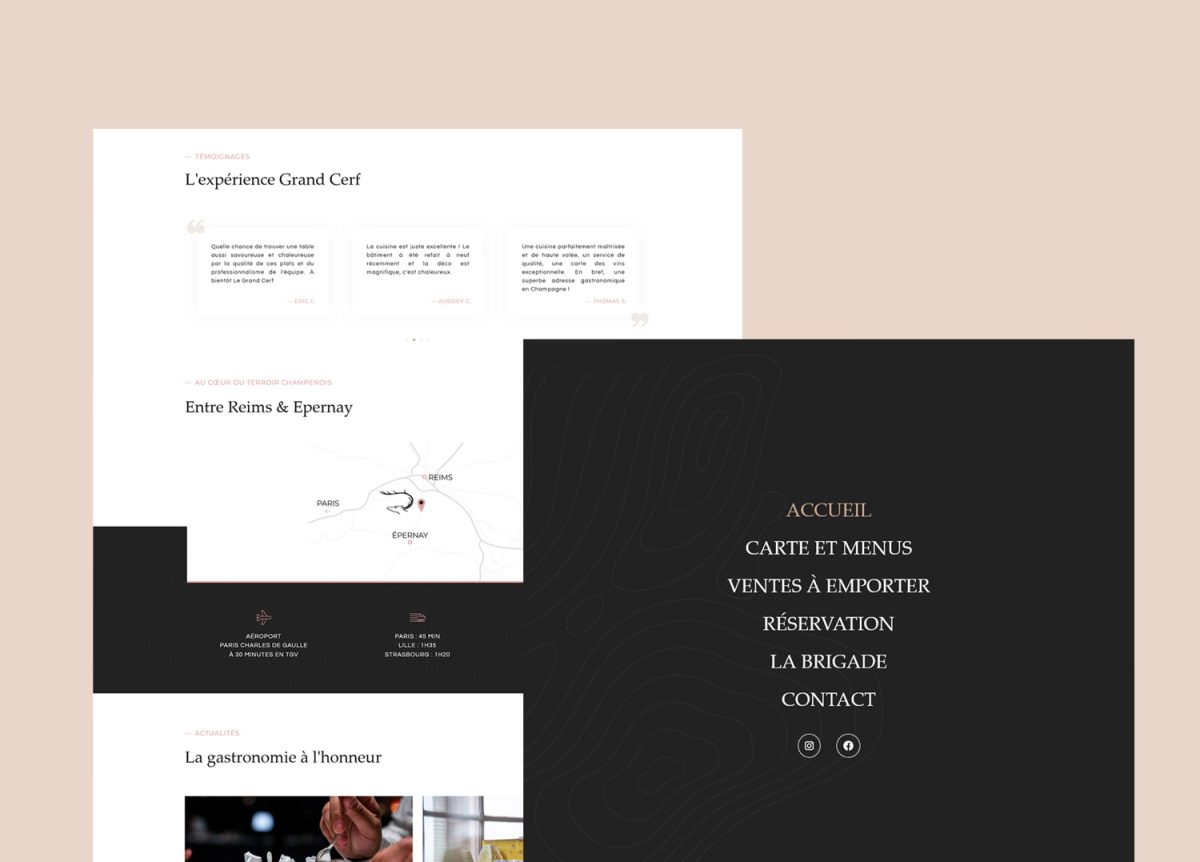 Grâce à l’accompagnement de l’agence IMPAAKT, le restaurant Le Grand Cerf a obtenu des résultats remarquables. Les retours clients sur le nouveau site sont très positifs, témoignant de son design attractif et de sa simplicité d’utilisation. Le site se positionne désormais en première page de Google sur des mots-clés stratégiques tels que “restaurant étoilé à Reims” ou “restaurant gastronomique Reims”, augmentant significativement sa visibilité en ligne. Ces actions ont contribué à une fréquentation renouvelée, avec un restaurant souvent complet le midi comme le soir.