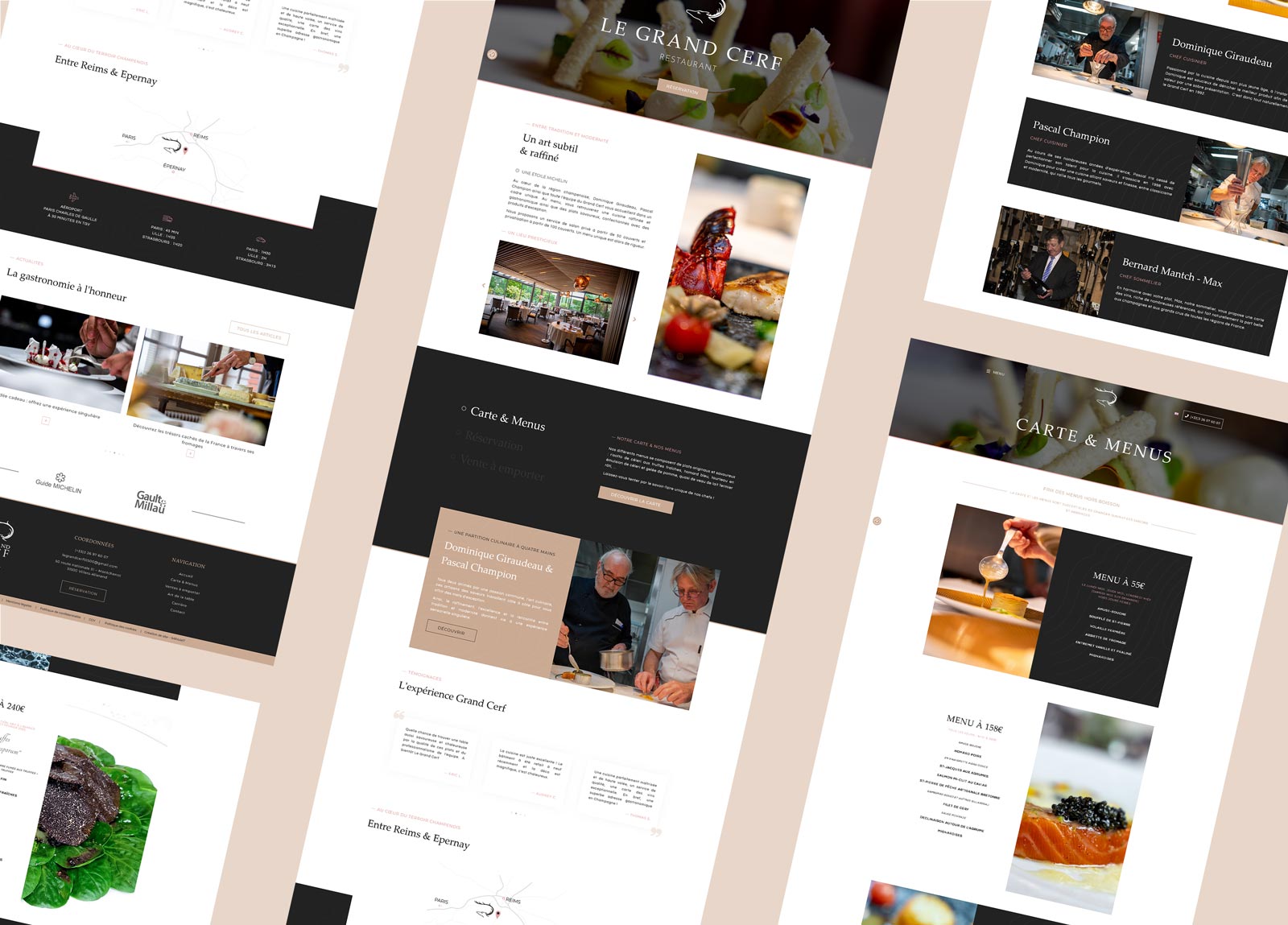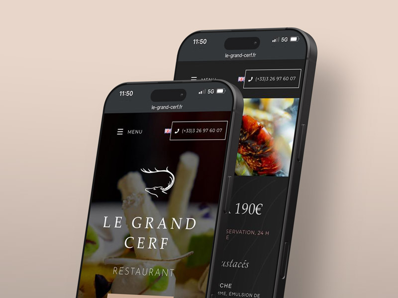 Pour accompagner le restaurant Le Grand Cerf, plusieurs travaux ont été réalisés. Des conseils en communication ont été apporté afin de définir un branding adapté, complété par la création d’une identité visuelle unique reflétant l’image de l’établissement. Un site e-commerce a été conçu, intégrant une fonctionnalité de réservation en ligne avec empreinte bancaire pour réduire les désistements de dernière minute. Une stratégie de référencement axée sur des mots-clés à fort trafic a été mise en place, appuyée par une rédaction SEO optimisée pour améliorer son positionnement dans Google.
