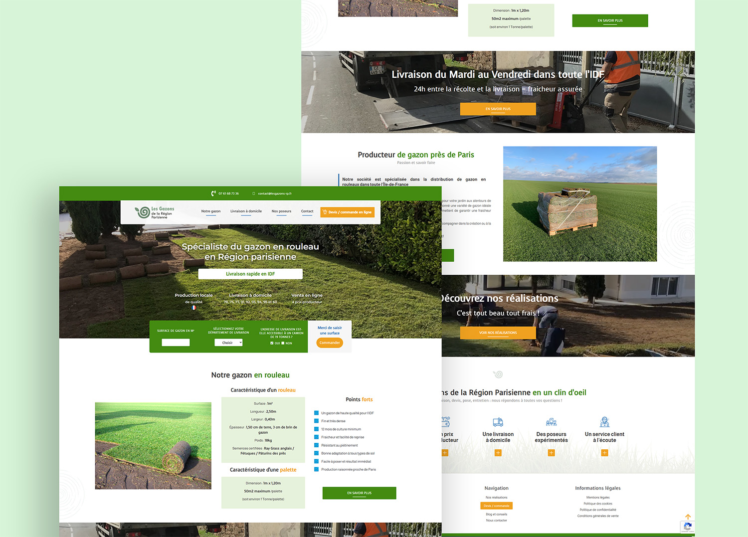 Les Gazons de la Région Parisienne sont spécialisés dans la distribution de gazon en rouleaux en Île-de-France. Livraison rapide, qualité locale, vente en ligne à prix producteur : tout est fait pour obtenir une pelouse dense et impeccable avec un résultat immédiat. Leur force : une solution clé en main, et même une équipe de pose si besoin.